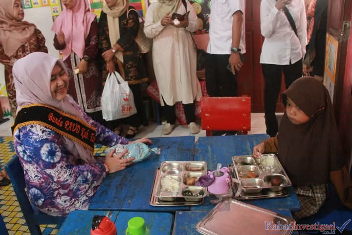 Tanjab Barat. Kabarinvestigasi. Co. Id. Dalam rangka monitoring pelaksanaan Program Makanan Bergizi Gratis (MBG), Bunda PAUD Kabupaten Tanjung Jabung Barat, Hj. Fadhilah Sadat, meninjau langsung kegiatan makan bergizi di TK Pertiwi Kuala Tungkal, Kecamatan Tungkal Ilir, Rabu (3/6).