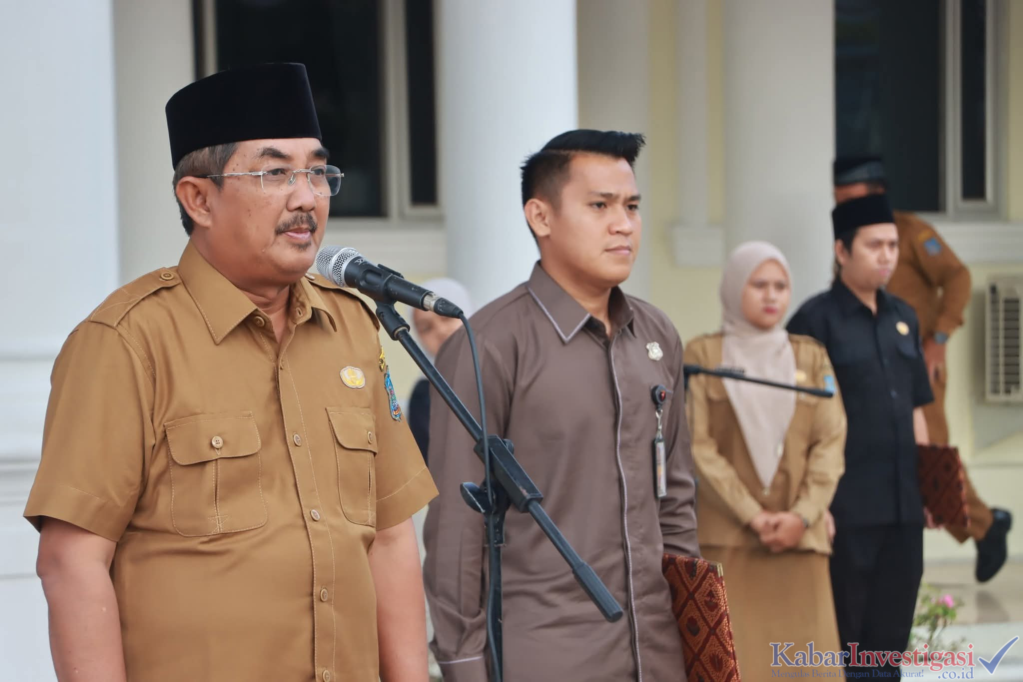 Tanjab Barat. Kabarinvestigasi. Co. Id. Bupati Tanjung Jabung Barat, Drs. H. Anwar Sadat, M.Ag., memimpin apel Senin pagi yang berlangsung di halaman Kantor Bupati Tanjung Jabung Barat, Senin (1/9).