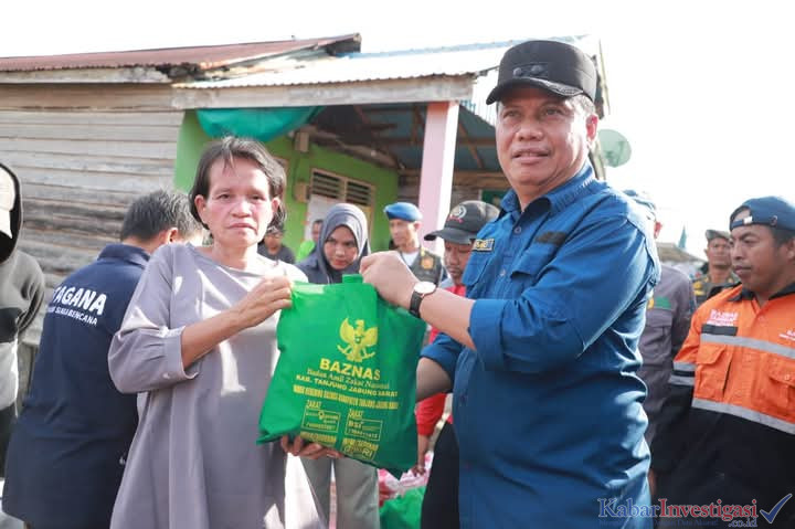 Kuala Tungkal. Kabarinvestigasi. Co. Id. Wakil Bupati Tanjung Jabung Barat, Dr. H. Katamso, SA, SE, ME meninjau sekaligus menyerahkan bantuan kepada warga Jalan Bawal RT 06, Kelurahan Kampung Nelayan, yang terdampak musibah kebakaran, Minggu (4/5).