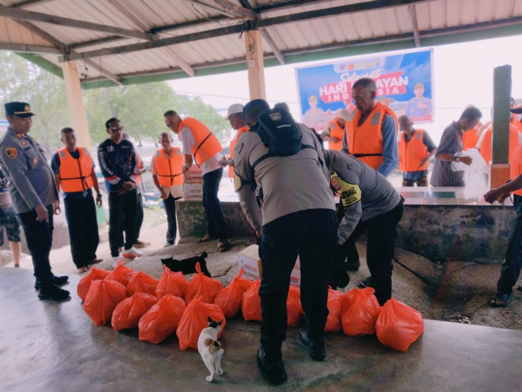 Dalam kegiatan ini, sebanyak 20 orang nelayan dari wilayah Sungai Buluh, Alai, dan Batu Limau menerima bantuan sosial berupa sembako serta life jacket sebagai bentuk kepedulian Polri terhadap keselamatan dan kesejahteraan para nelayan.