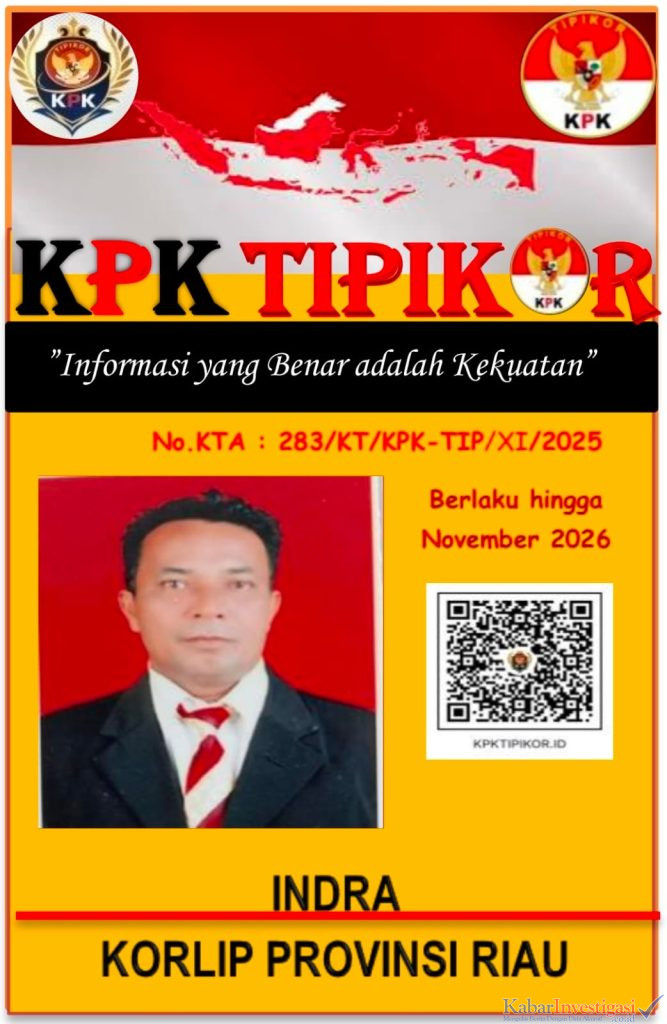 Bengkalis. Terhitung sejak 20 November 2025 Pimpinan pusat media KPK Tipikor.id menugaskan Indra Kitang untuk Wilayah Provinsi Riau.sesuai penugasan / surat tugas no 282/ST KPK -Tip / XI / 2025.