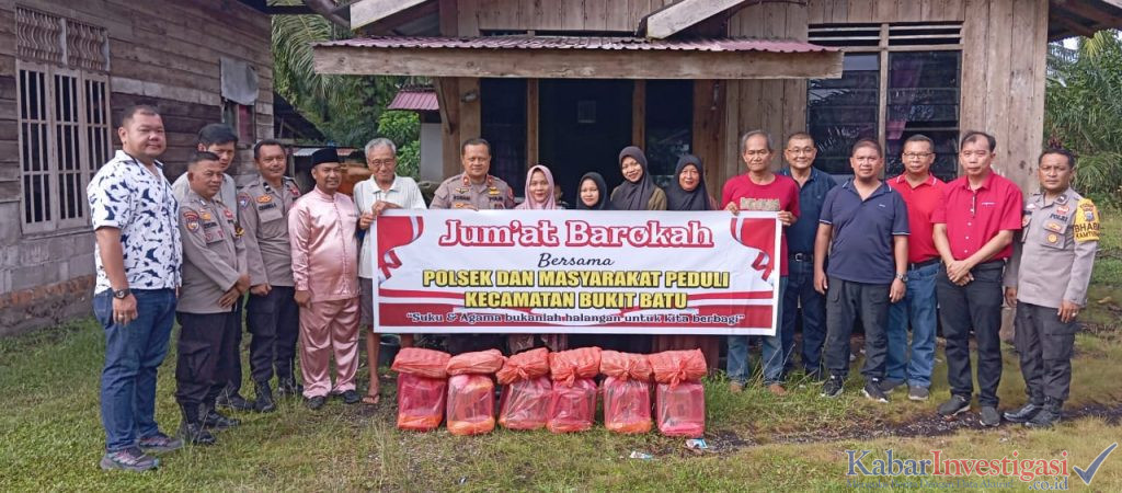 Ditempat yang sama Jumat barokah pada hari ini yg digagas oleh Kapolsek Bukit Batu Kompol Rokhani, S.S., M.H. yang di dampingi Kanit Intel , Babin Desa Pakning Asal serta anggota dan bersama semua unsur masyarakat di Kecamatan Bukit Batu aktif memberikan bantuan sosial berupa sembako kepada masyarakat yang kurang mampu di Dusun Sukoharjo Desa Pakning Asal kecamatan Bukit Batu tanpa melihat latar belakang baik ras, suku dan agama.