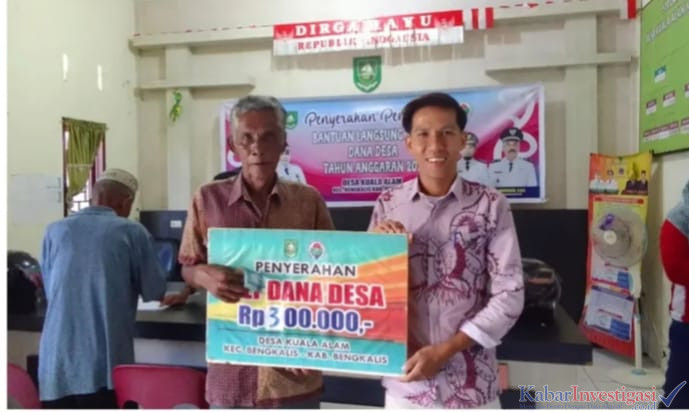 Oleh karena itu Pemdes Kuala alam kembali menyalurkan Bantuan Langsung Tunai (BLT) Dana Desa Kuala alam Kecamatan Bengkalis tahun anggaran 2025 masing-masing bantuan langsung tunai tersebut di Terima dengan jumlah yang sama Rp.300000 perbulan dengan jumlah penerima sebanyak 35 orang Keluarga Penerima Manfaat tersebut.