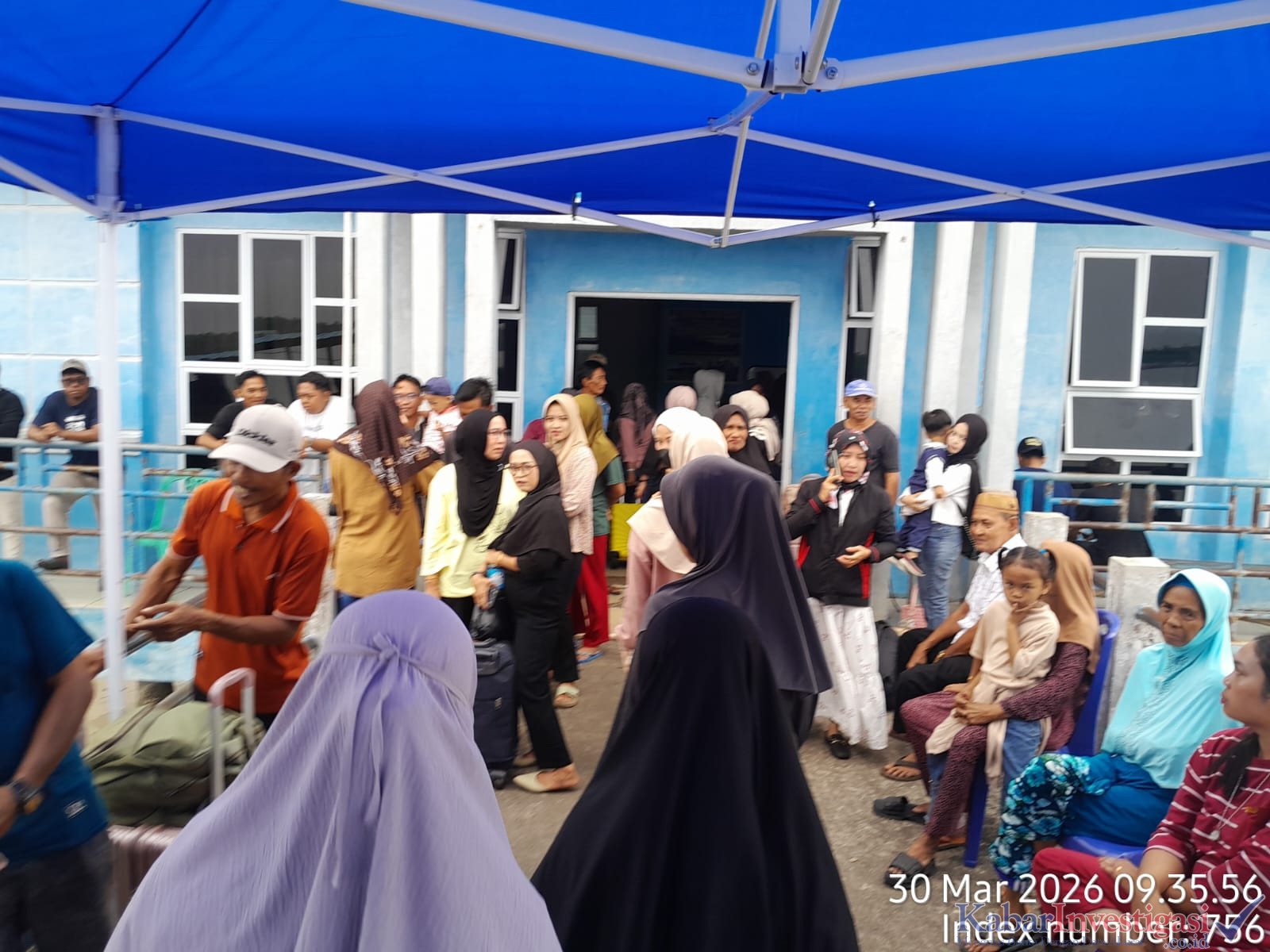 Tanahmerah.kabarinvestigasi.Co.id Arus Balik Lebaran di Pelabuhan Biru Kuala Enok Padat, Petugas Siaga Jaga Keselamatan Penumpang di Pelabuhan Biru Kuala Enok Kecamatan Tanah Merah Kabupaten Indragiri Hilir, Riau.