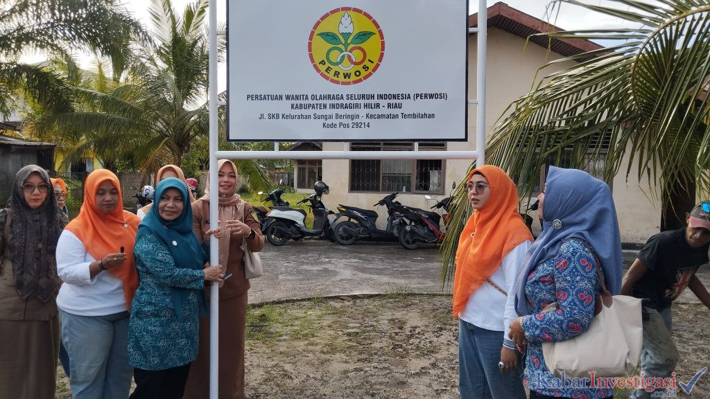 Tembilahan.kabarinvestigasi.co.id. Ketua Perwosi Kabupaten Indragiri Hilir, Hj. Katerina Susanti Herman, meninjau langsung pemasangan plang Sekretariat Perwosi Inhil yang berlokasi di Jalan SKB Tembilahan, pada Senin (23/06/2025).