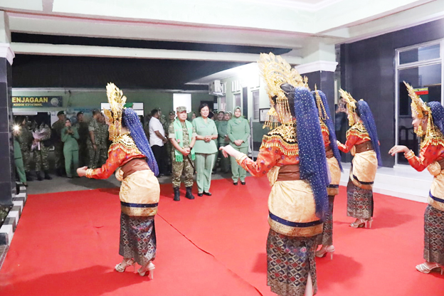 Kedatangan Pangdam didampingi Ketua Persit Kartika Chandra Kirana (KCK) PD XIX/Tuanku Tambusai, Ny. Yulia Agus Hadi Waluyo. Kehadiran rombongan disambut dengan gembira oleh prajurit Kodim 0314/Inhil melalui tradisi militer sebagai bentuk penghormatan kepada pimpinan di lingkungan TNI Angkatan Darat.