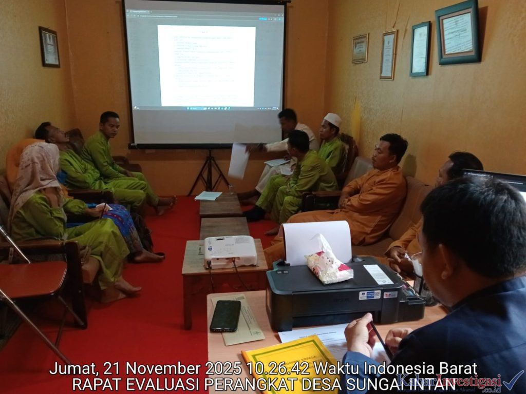 Tembilahan. Kabarinvestigasi. Co. Id. Pemerintah Desa Sungai Intan, Kecamatan Tembilahan Hulu laksanakan Rapat Evaluasi Kinerja Perangkat Desa yang bertempat di Kantor Desa Sungai Intan Jum’at (21/11/2025).
