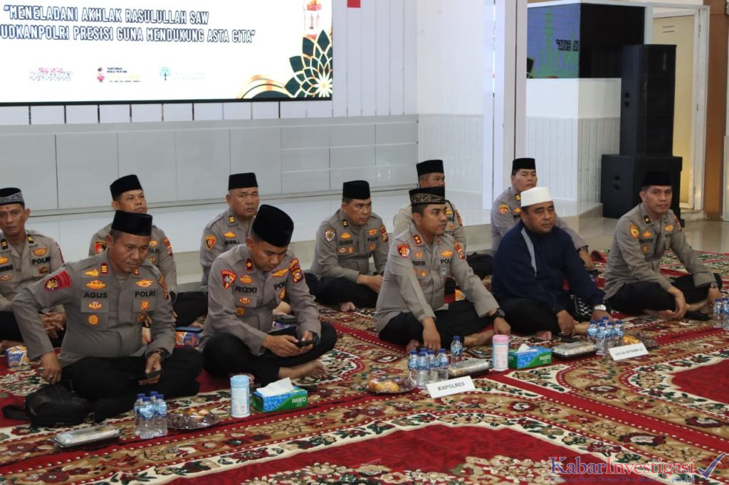 Indragiri Hilir . Kabarinvestigasi. Co. Id. Polres Indragiri Hilir menggelar kegiatan peringatan Maulid Nabi Besar Muhammad SAW 1447 H/2025 M pada Jumat (5/9/2025) pukul 08.30 WIB di Aula Rekonfu Polres Indragiri Hilir. Acara berlangsung penuh khidmat dan dihadiri jajaran pimpinan, anggota, serta masyarakat.