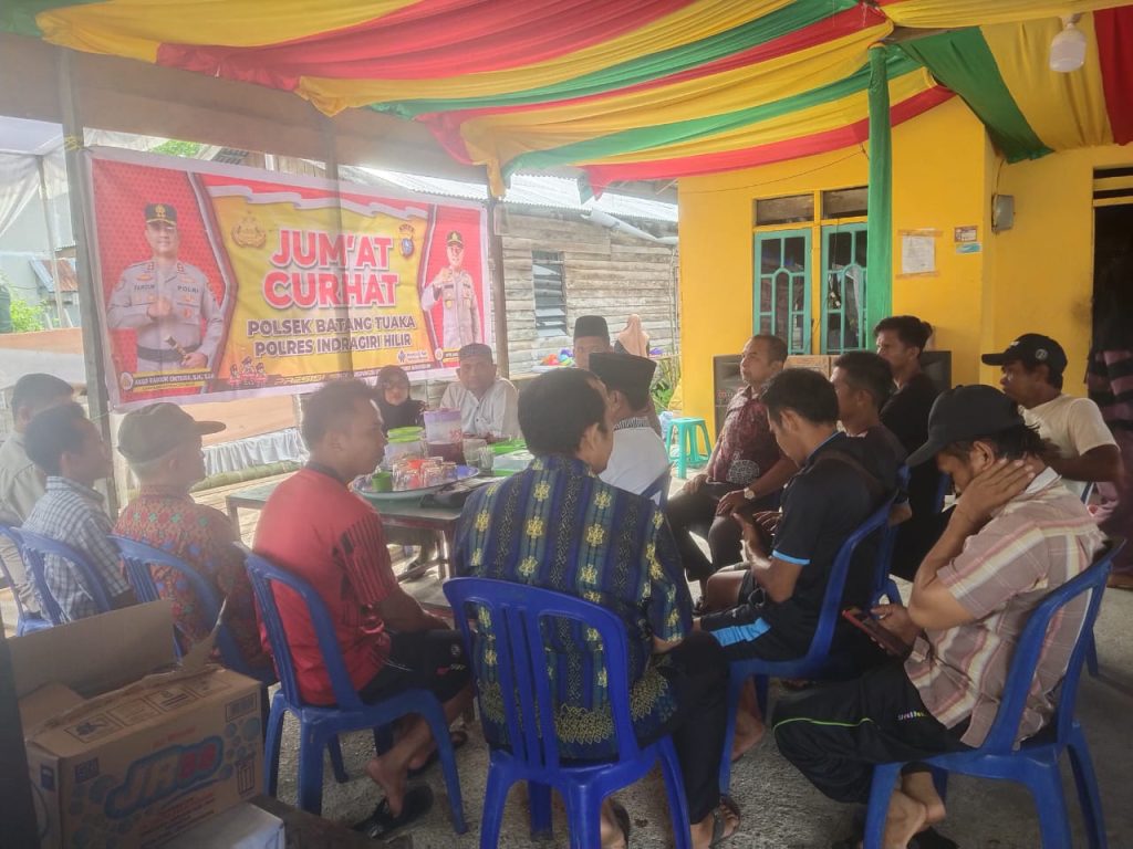 Batang Tuaka. Kabarinvestigasi. Co. Id. Polsek Batang Tuaka Polres Indragiri Hilir Polda Riau melaksanakan kegiatan Jum’at Curhat sebagai wadah komunikasi langsung antara Polri dan masyarakat. Kegiatan tersebut berlangsung pada Jumat, 26 Desember 2025, sekitar pukul 09.00 WIB, bertempat di Rumah Sdr. Fahri, Dusun Sungai Cakah, Desa Sungai Luar, Kecamatan Batang Tuaka, Kabupaten Indragiri Hilir.