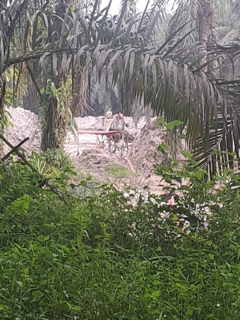 Dari pantauan tim awak media dilapangan, ada beberapa unit rakit dompeng yang sudah memporak porandakan area perkebunan kelapa sawit tepatnya di Desa Sungai Sirih ( F4 ) tepatnya di jalur 7 Kecamatan singingi. diduga telah beraktivitas belum lama dan menggunakan excavator untuk mengupas bahan supaya mempermudah perkerjaan, untuk memasukan pipi kedalam dasar tanah, informasi para penambang ini menggunakan mesin keong 8 untuk melakukan aktivitas ilegal ini.