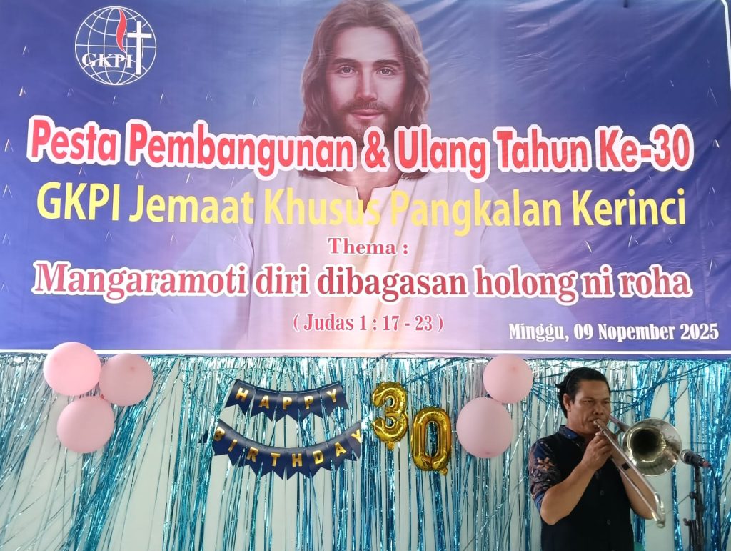 Pangkalan kerinci. Kabarinvestigasi.co.id. Minggu,09 Nopember 2025 bertempat di Aula GKPI Jemaat Khusus Pangkalan Kerinci Pelalawan Riau mengadakan pesta Pembangunan dan Ulang tahun yang ke 30 tahun.di mulai dengan ibadah kebaktian bersama, jemaat lebih kurang 450 kepala keluarga. Thema: Mangaramoti diri dibagasan holong ni roha/Peliharalah dirimu demikian dalam kasih Allah (Yudas 1:17-23) yang dibawakan oleh hamba Tuhan Pdt. SRP.Aritonang,SSi, Liturgis oleh Pnt. H. Simanjuntak ( Guru Jemaat), Warta Jemaat oleh Belman Sinaga (Sekretaris Jemaat) dan doa Syafaat oleh Pnt. TPY br.Sitorus. Dalam kotbahnya Bapak Pendeta dengan lantang menyuarakan supaya para jemaat harus berbuat yang terbaik kepada Tuhan lewat pesta Pembangunan dan Ulang tahun GKPI ke -30 tahun.