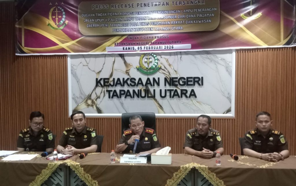 Kajari Taput Dedy F Rajagukguk, SH, MH dalam press release dihadapan sejumlah media termasuk Kabarinvestigasi.co.id ,Kamis(5/2) menyampaikan BG selaku Kepala Dinas Perkim Taput tahun 2020 sekaligus pengguna anggaran, serta WL penyedia jasa atau pelaksana kegiatan LPJU dan lampu Taman ditetapkan sebagai tersangka berdasarkan hasil ekspose dan gelar perkara yang menyimpulkan terpenuhinya unsur tindak pidana korupsi.