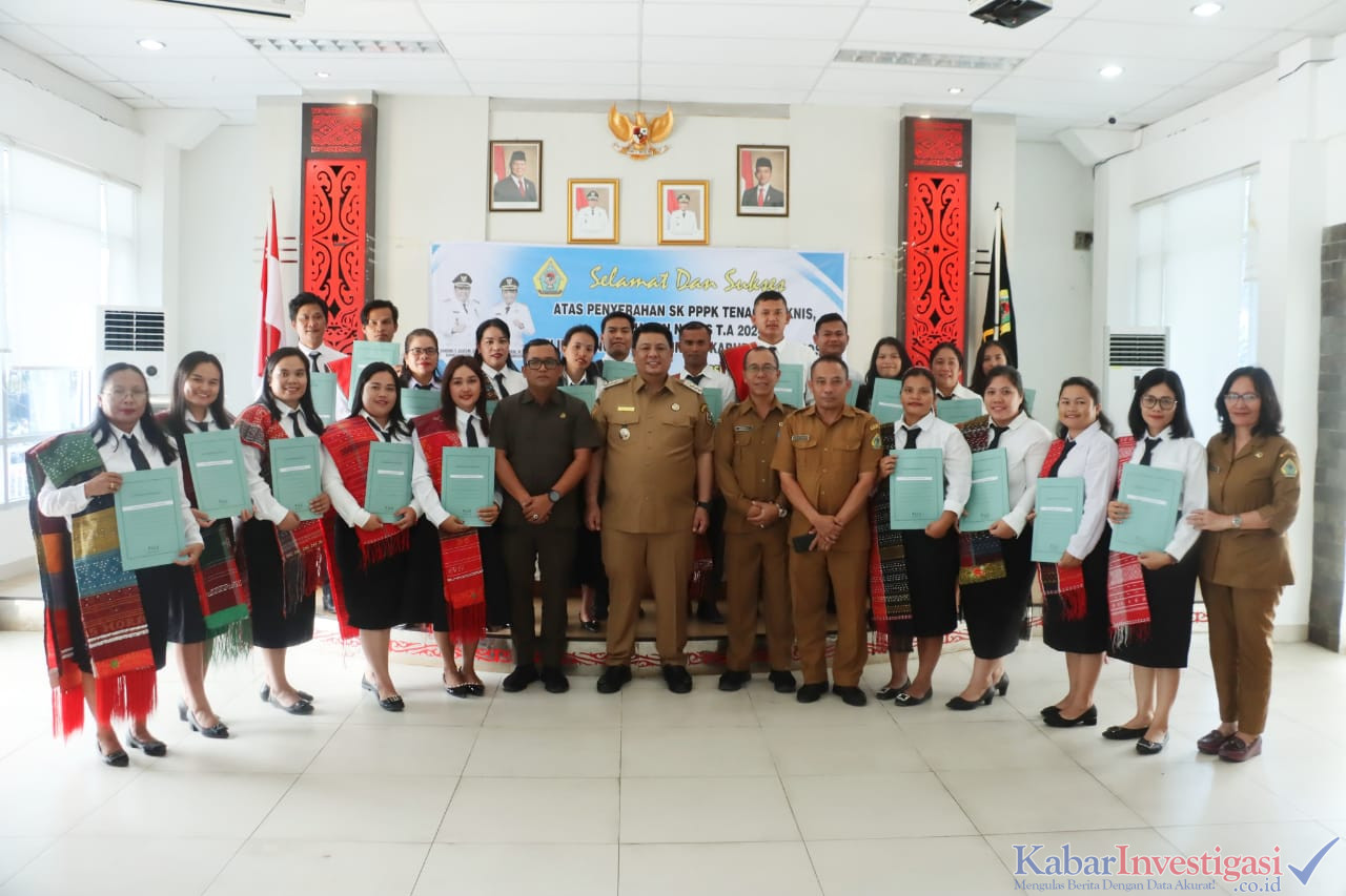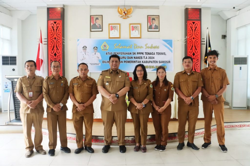 Samosir.kabarinvestigasi.co.id. Bupati Samosir Vandiko T. Gultom menyerahkan surat keputusan (SK) pengangkatan P3K Tahap II kepada 21 orang yang dinyatakan lulus ujian P3K formasi 2024. “Saya harap agar kita layani masyarakat dengan sepenuh hati, gunakan kompetensinya bapak ibu miliki. Inovasi dan kreatifitas bapak ibu kami perlukan guna mempercepat program untuk menyejahterakan masyarakat” kata Vandiko saat memberikan arahan di Aula Kantor Bupati Samosir,(01/09/25).