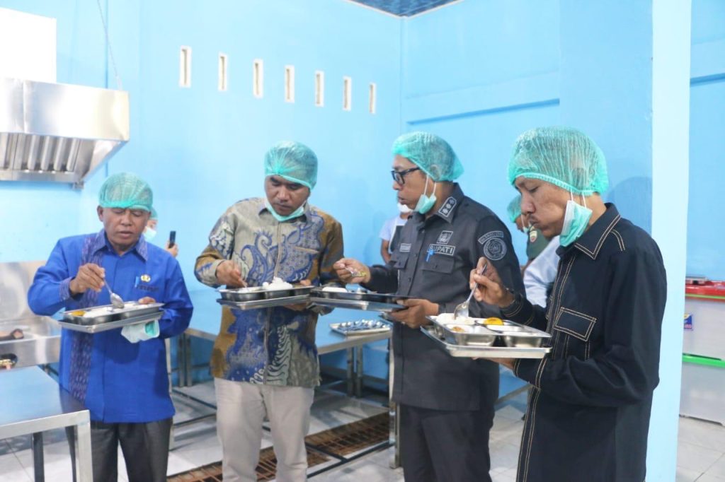 Acara peresmian ditutup dengan pengguntingan pita serta peninjauan langsung ke area dapur oleh Bupati JTP Hutabarat, yang turut mencicipi menu makanan hari itu untuk memastikan kualitas dan cita rasanya.