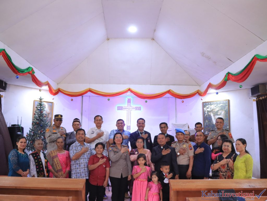 Kapolres Samosir AKBP Rina Sry Nirwana Tarigan, S.I.K melaksanakan kunjungan sekaligus ibadah bersama jemaat Gereja HKBP Sidihoni, Desa Sabungan Huta, Kecamatan Ronggur Nihuta, Kabupaten Samosir, Minggu (25/01/26) sekitar pukul 11.00 WIB.