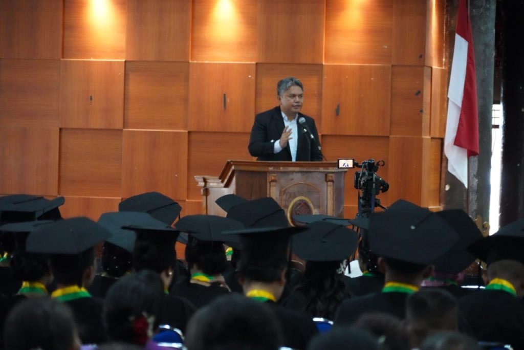 Wakil Bupati Tapanuli Utara Dr. Deni Parlindungan Lumbantoruan, ST, M. Eng, yang hadir mewakili Bupati Dr. Jonius Taripar Parsaoran Hutabarat, S. Si., M. Si, menyampaikan apresiasi dan pesan khusus kepada seluruh wisudawan.