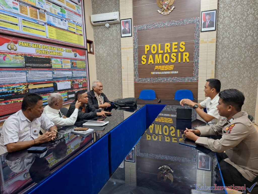 Samosir.kabarinvestigasi.co.id. Polres Samosir menerima audiensi dari sejumlah tokoh pemerhati lingkungan Kabupaten Samosir pada Senin (2/6/25) pukul 14.10 WIB di Aula Vidcon Mako Polres Samosir. Kapolres AKBP Rina Frillya, S.I.K diwakili oleh Kasat Intelkam IPTU Donal Sitanggang, S.H., M.H, didampingi oleh PLT Kasi Humas Brigpol Gunawan Situmorang.